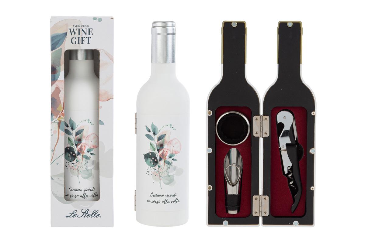 ACCESSORI 3 PZ. VINO IN BOTTIGLIA SORSI D’AMORE 6X23 CM. C/COLOR/BOX