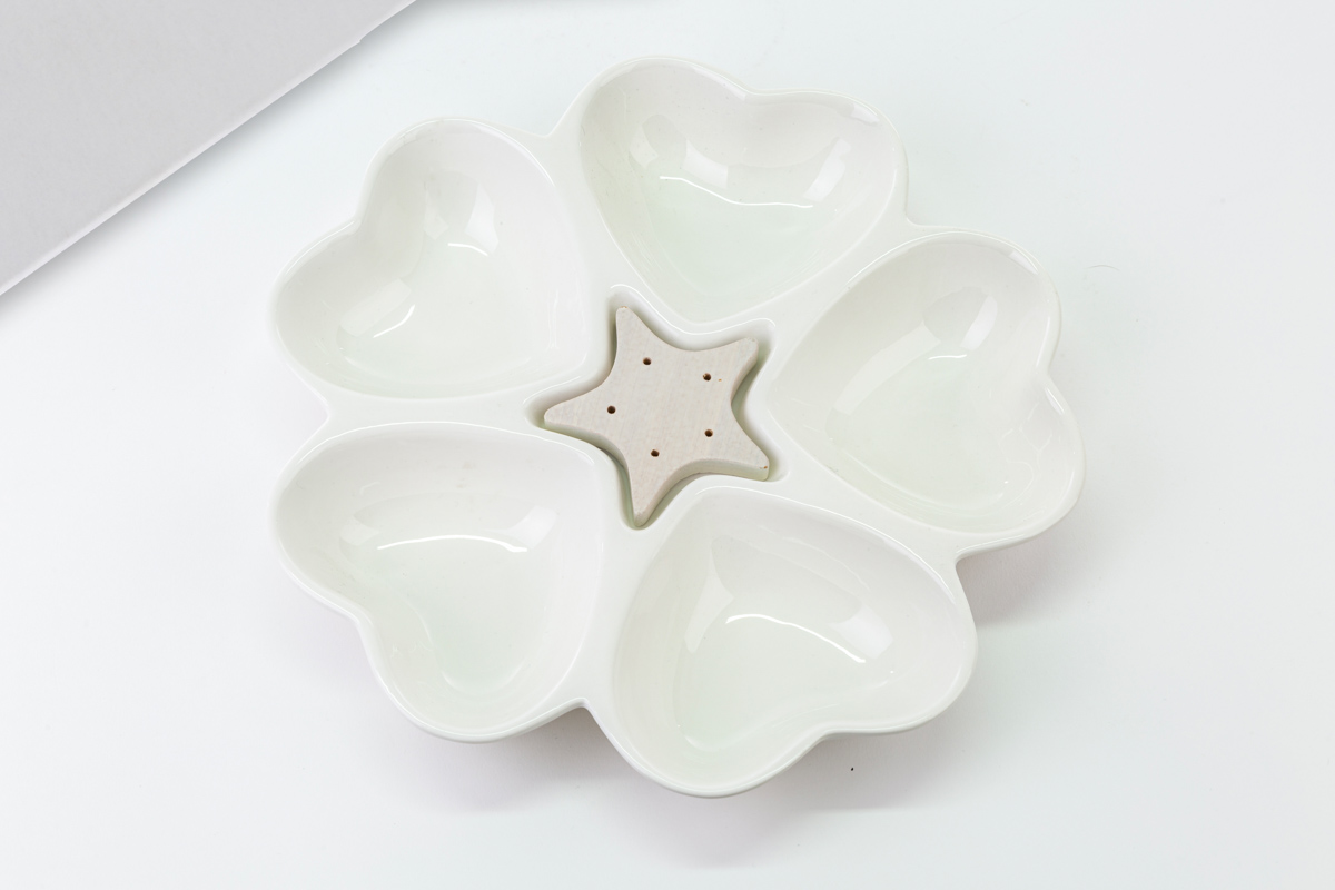 Antipastiera Cuori Porcellana Bianca C/Astuccio 28Xh.5 Cm