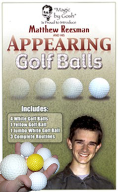 Nuovo approccio alla moltiplicazione ed alla manipolazione delle palline da golf senza dover utilizzare le conchiglie. Il set e’ composto da quattro palline bianche da golf di circa cm 4 di diametro, una pallina identica alle precedenti ma gialla (per eventuali cambi di colore) ed una bianca di circa cm 6 di diametro, tutte di gomma morbida ed incredibilmente simili a quelle vere. Nelle istruzioni in italiano sono descritte alcune routine ed alcuni passaggi classici adattati a questo tipo di palline che possono trovare un ottimo utilizzo anche in micromagia.
