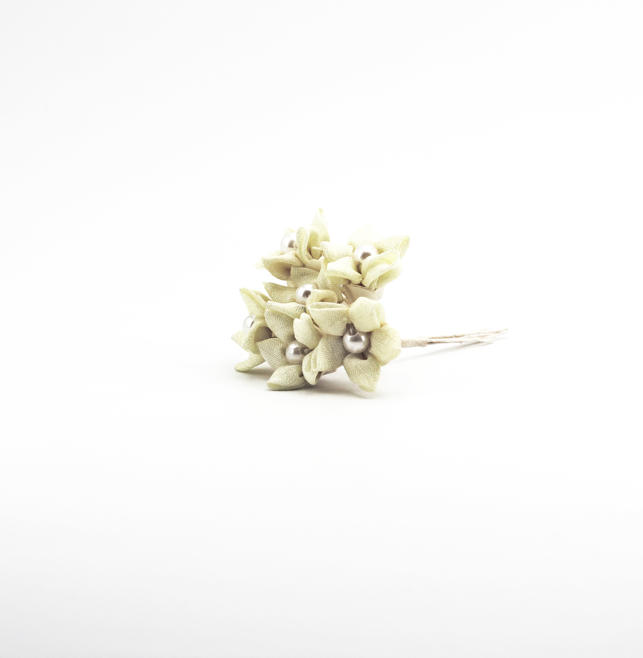 Applicazione fiore beige chiaro con stelo più perla centrale, dimensioni fiore: diametro 2,5 cm
