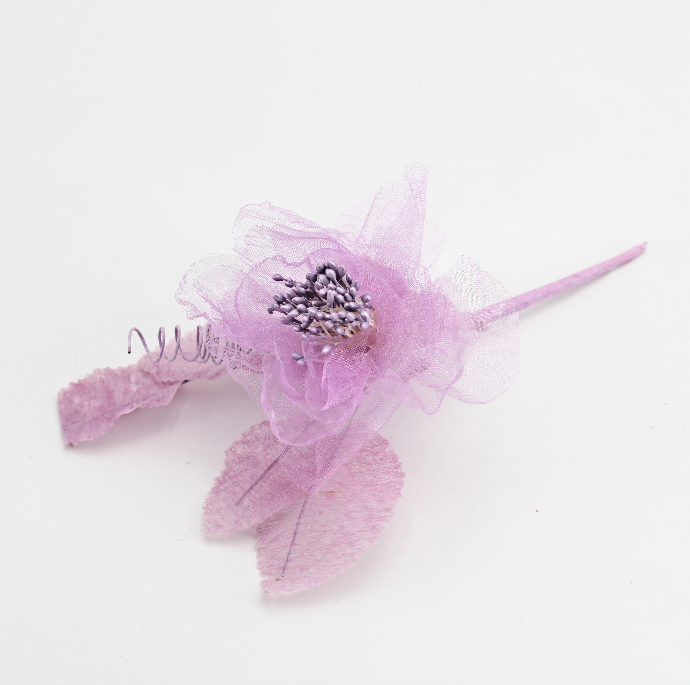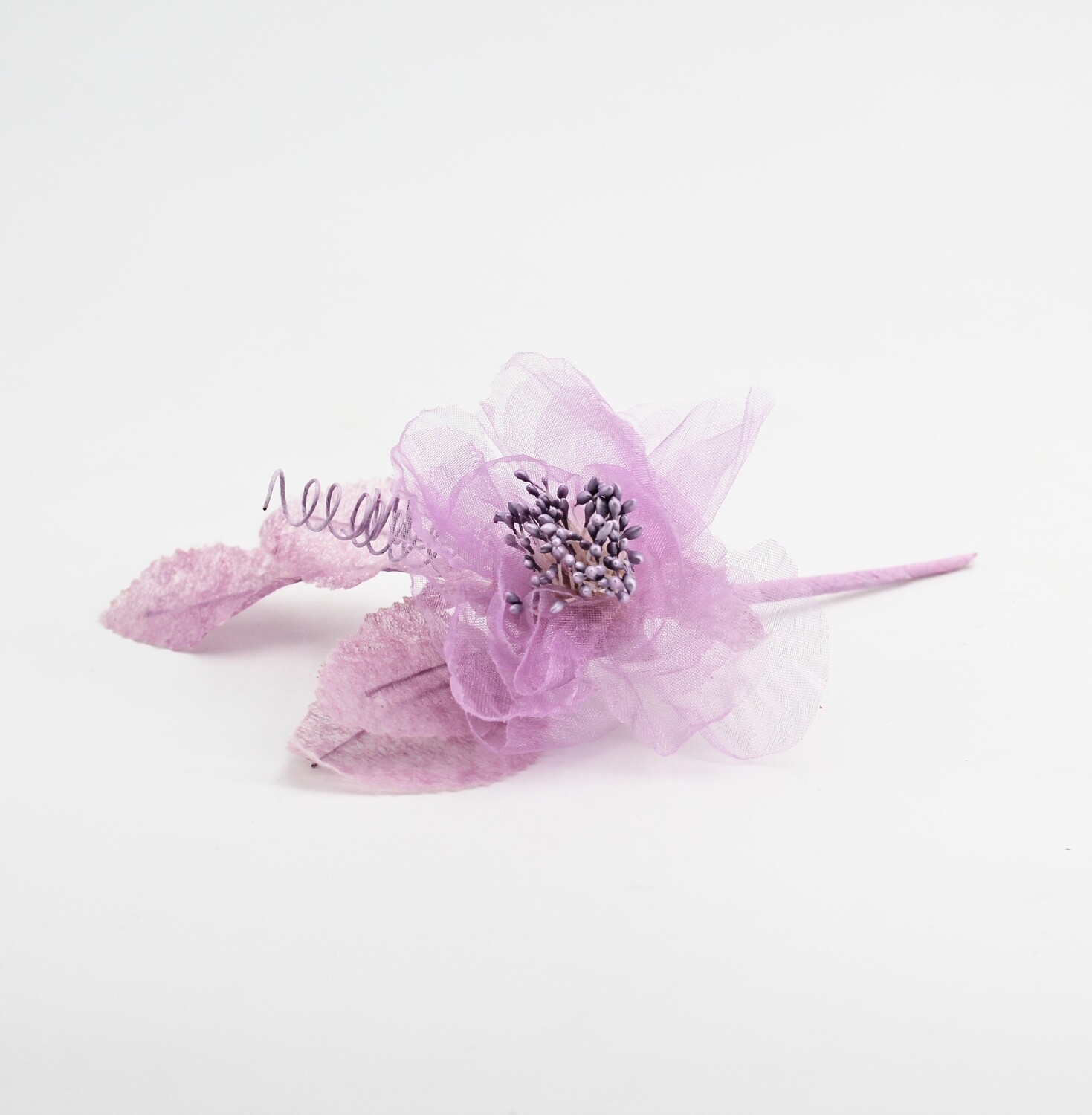 Applicazione pick rosa organza lilla, dimensioni fiore: diametro 10 cm.