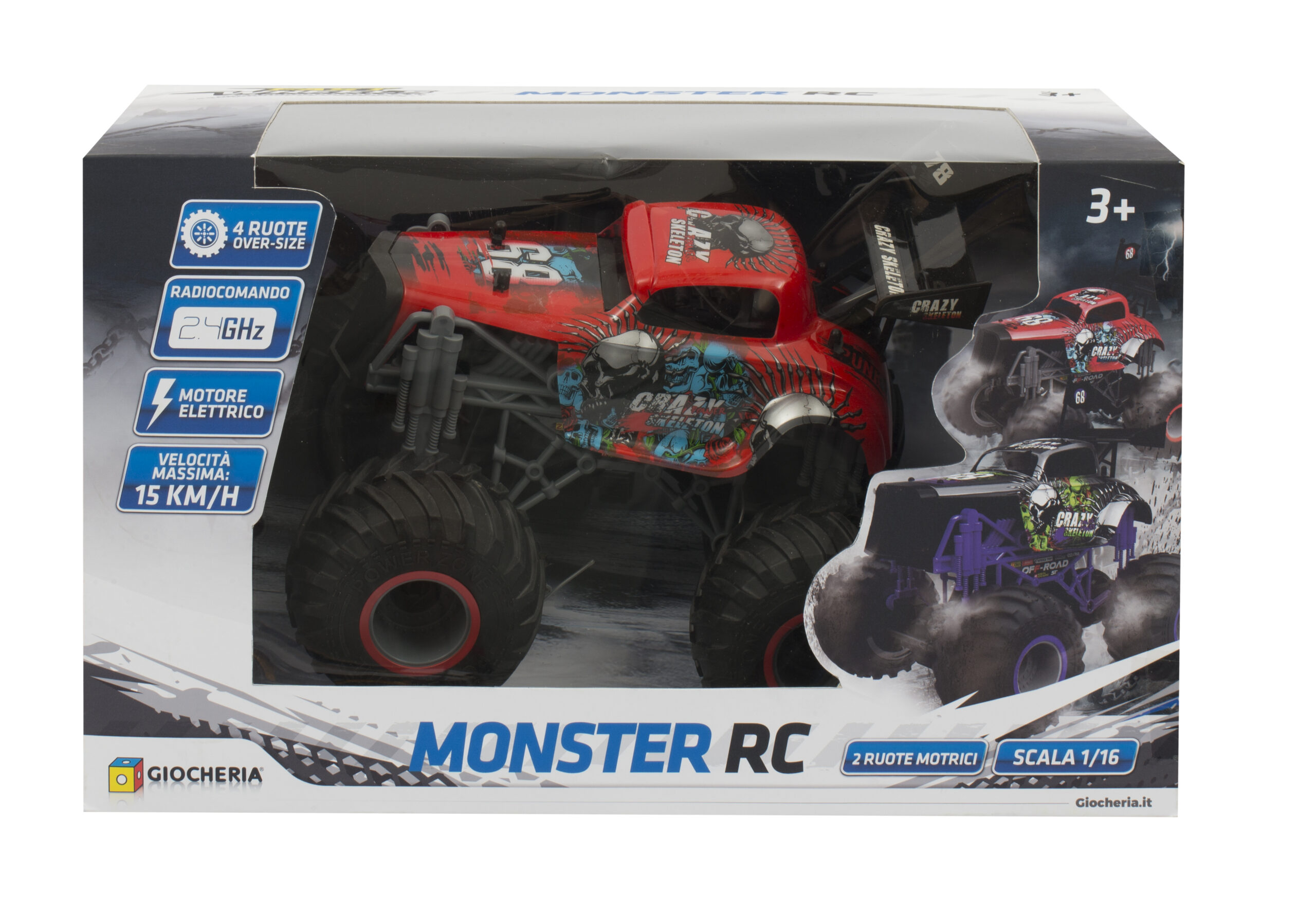 Fuoristrada radiocomandato in scala 1:16, con motore elettrico e radiocomando da 2.4GHz. Ha 4 ruote oversize, di cui 2 ruote motrice e può raggiungere una velocità di 15 km/h. Assortito in 2 modelli.