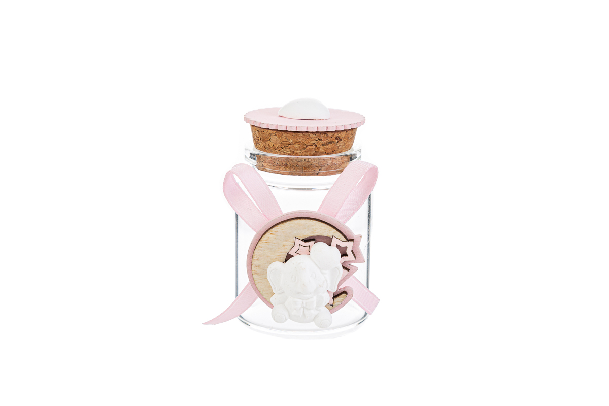 barattolino vetro elefante rosa 4,5xh.7 cm. Pz. 24