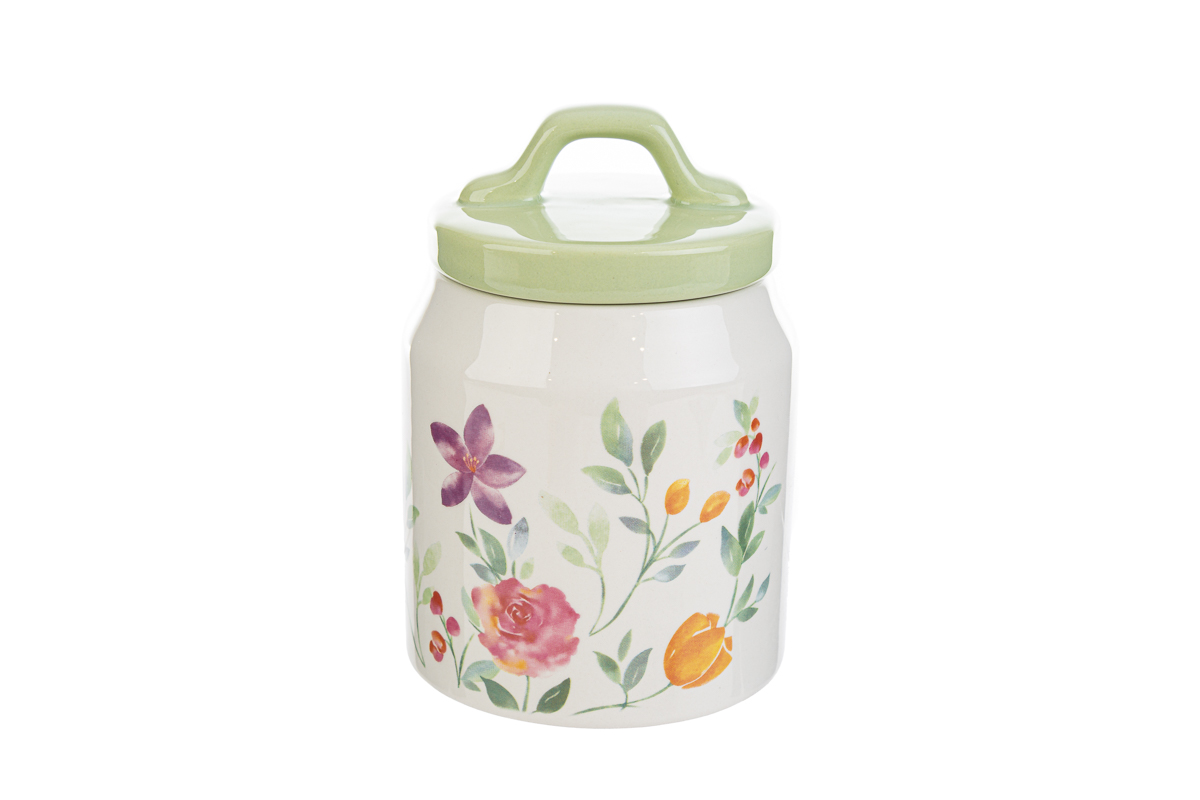 barattolo porcellana dec. fiori d.10xh.14 cm. |