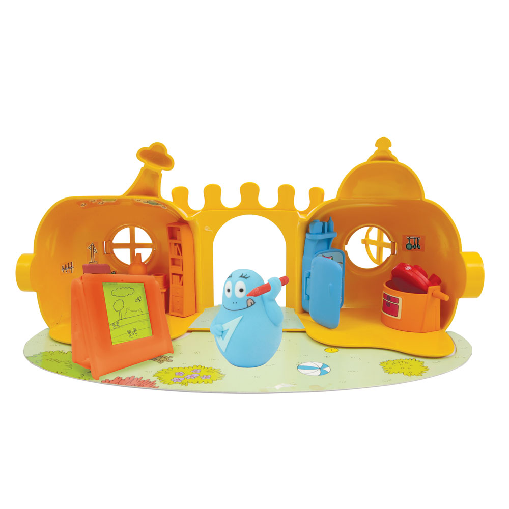 • Playset che rappresenta la Barbacasa dei Barbapapà: il playset riproduce 3 ambienti di gioco (cucina, camera, giardino) ed è ispirato nelle forme e nelle decorazioni alla Casa dei Barbapapà vista nella serie tv