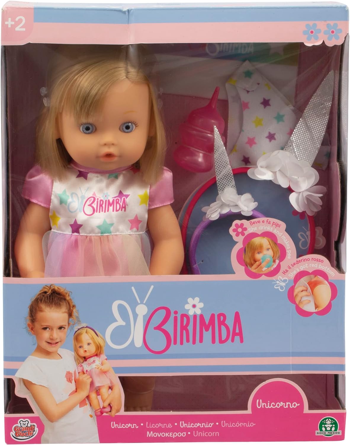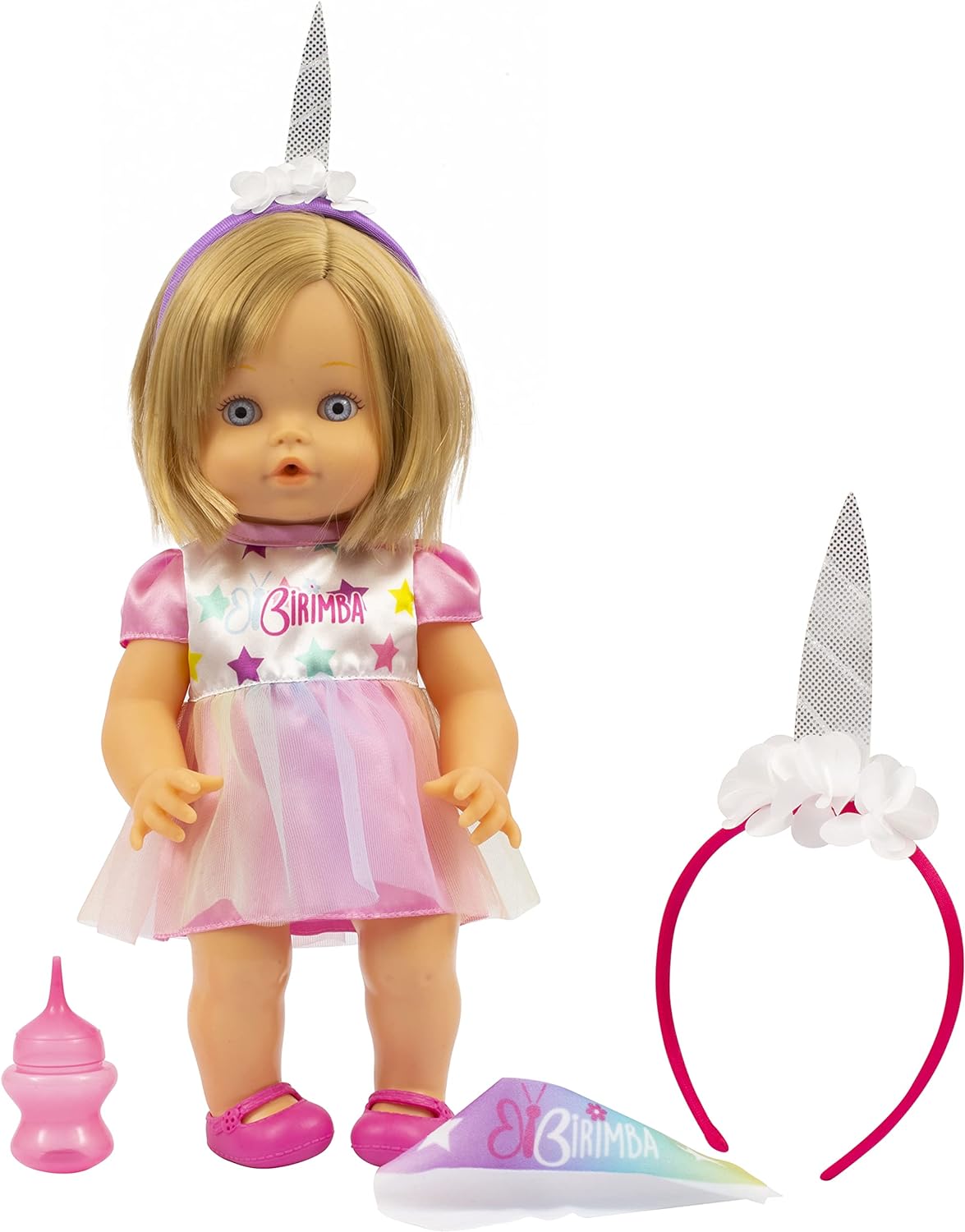 - Incluso: pannolino, salvietta, biberon e cerchietto unicorno per bambina