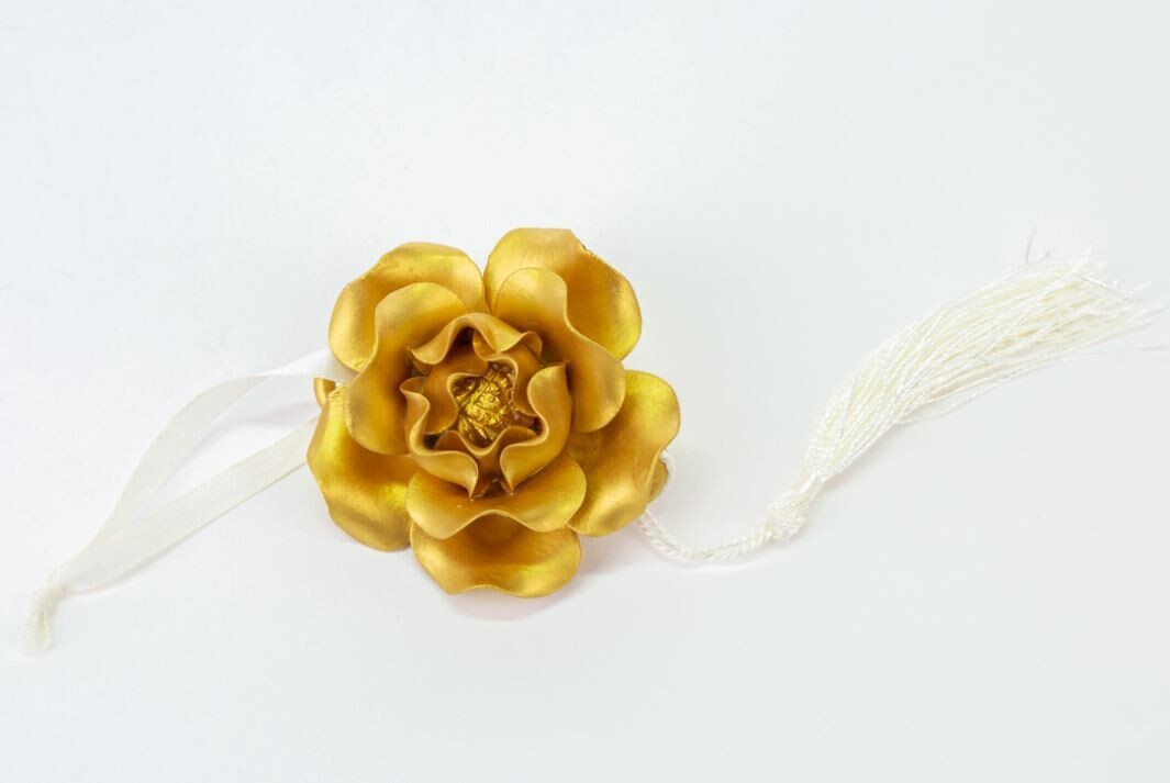 Bomboniera Appendino Calamita Fiore Oro Porcellana 6 pz