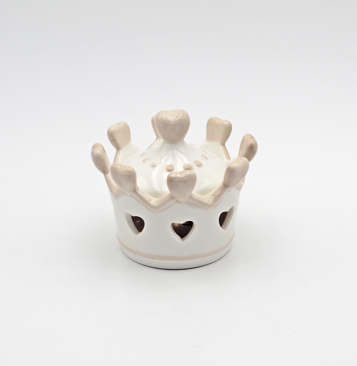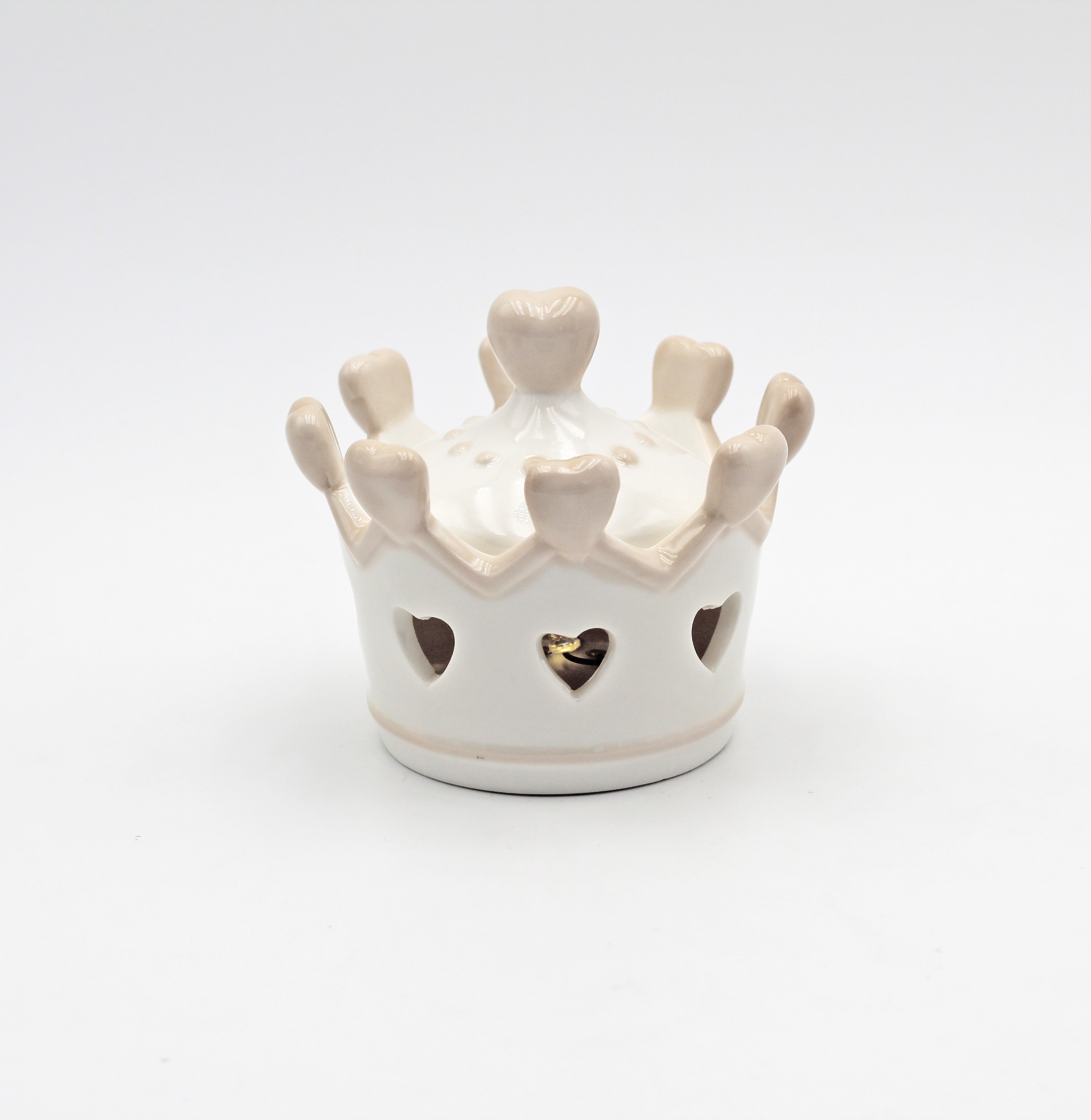 Bomboniera corona porcellana con led, dimensioni: 10 x 8 cm.