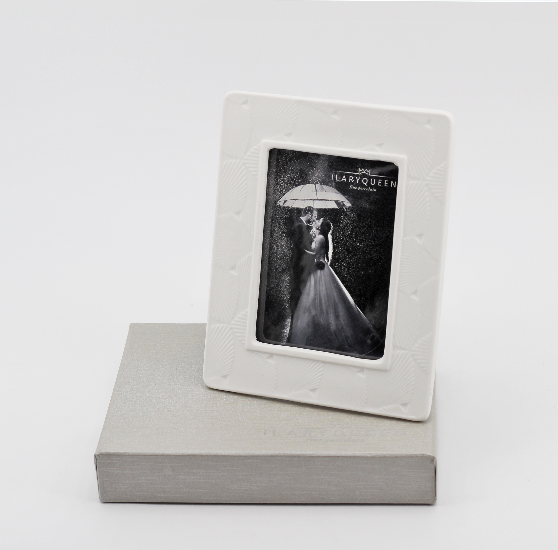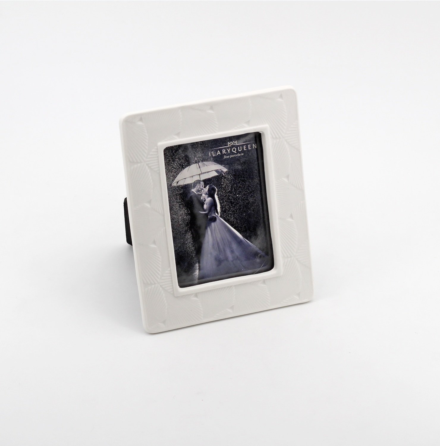 Bomboniera Ilary Queen in biscuit cornice piccola bianca dimensioni: 10,5 x h13,5 cm.