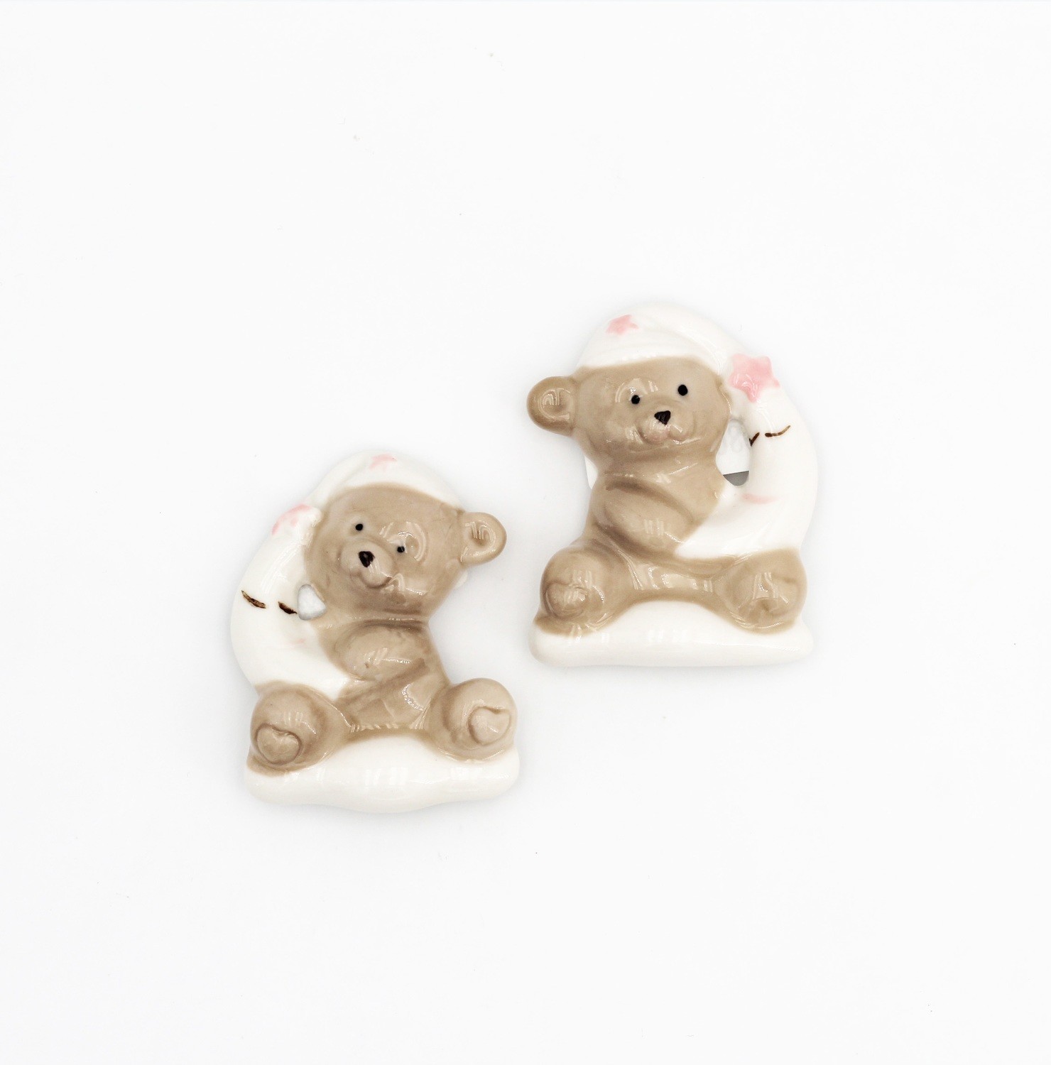 Bomboniera in porcellana orsetto rosa calamitato due soggetti assortiti dimensioni: 5 x 6 cm. la confezione comprende Pz.12