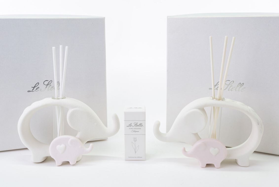 Bomboniera Profumatore Elefante porcellana Rosa con astuccio 2 pz assortiti