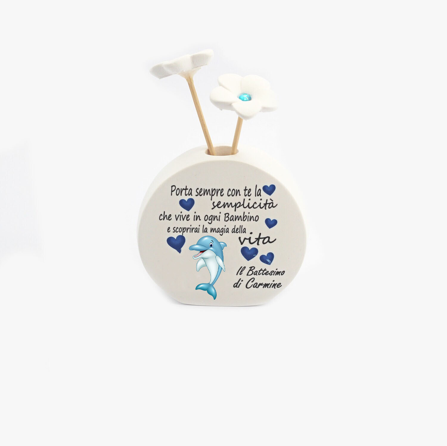 Personalizzazione con nome gratuita, nelle note dell’ordine indicare il nome ed eventuale immagine da applicare Lavorazione artigianale: tempi di spedizione 7 giorni lavorativi Descrizione articolo: Profumatore Materiale: Dplast Colore: Bianco Dimensioni: Larghezza 9 cm. Altezza 8 cm. La confezione comprende: 1 pezzo Include scatola: Da imballaggio DIPLAST resina sintetica, è un prodotto innovativo nella classe […]