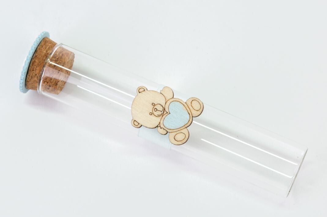 Bomboniera Provetta vetro orsetto celeste 24 pz