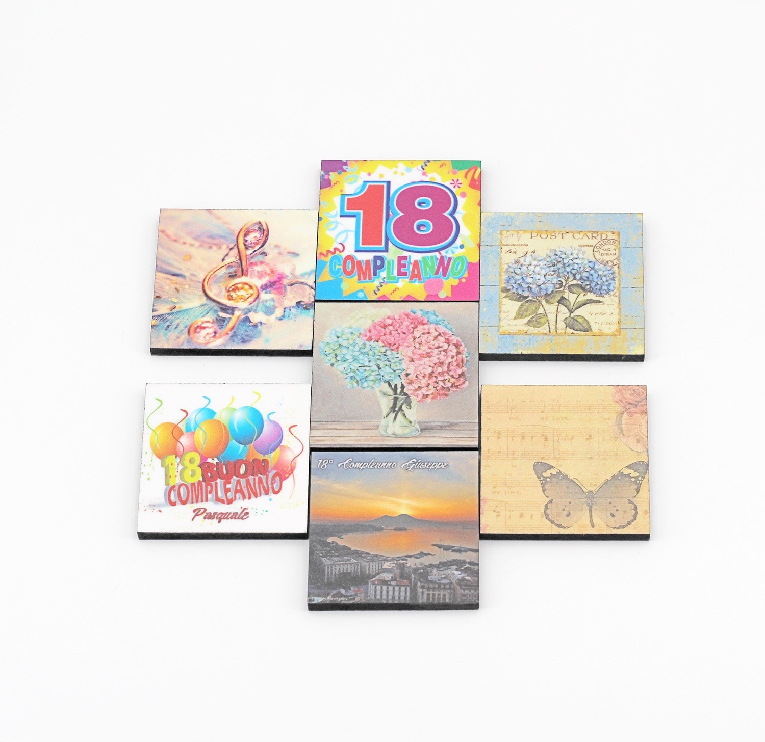 Calamite buon compleanno soggetti assortiti, dimensioni: 5 x 5 cm. la confezione comprende Pz. 7