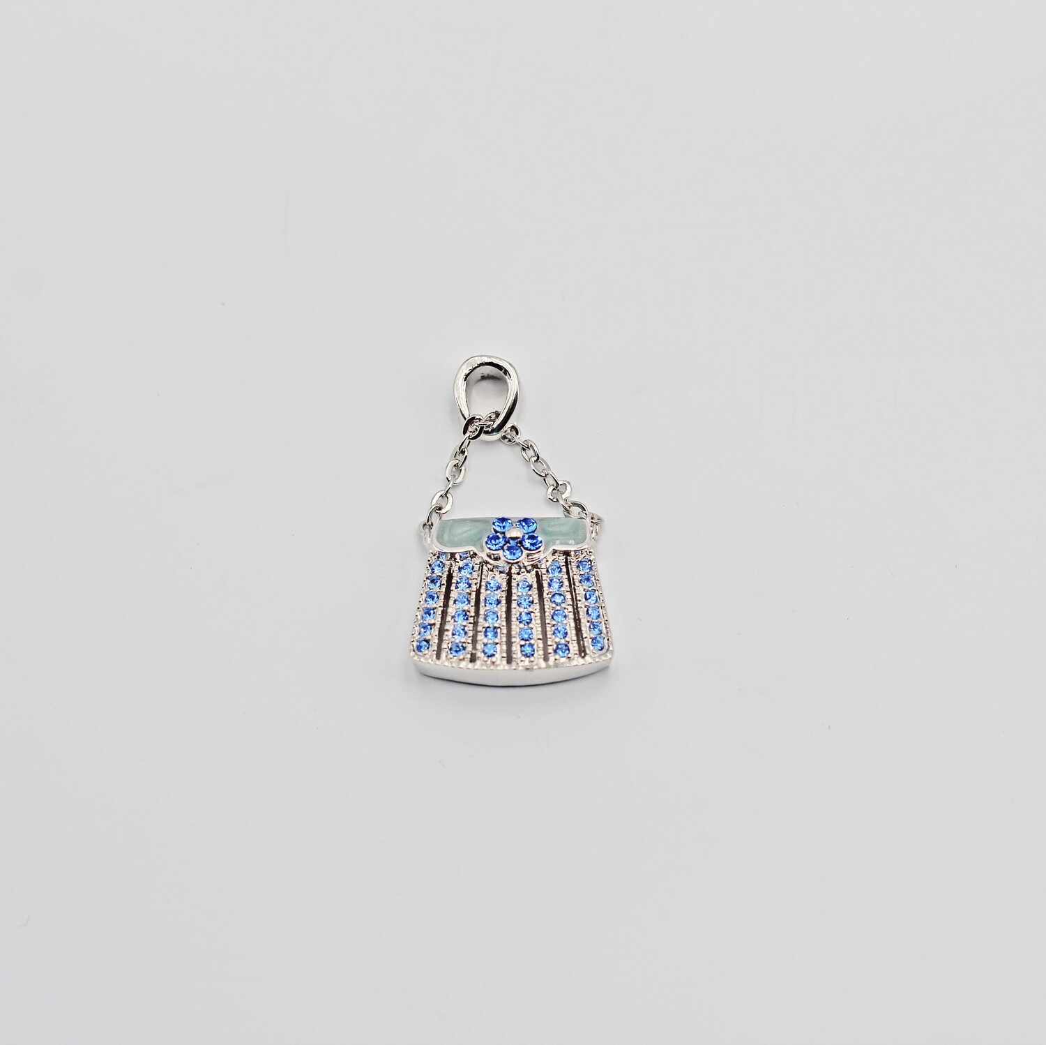 Descrizione articolo: Ciondolo borsetta con strass Materiale: Argento, strass Colore: Chrome,celeste Dimensioni: Lunghezza 1,5 cm. alezza 1,2 cm. Peso: 2 grammi La confezione comprende: 1 pezzo Include scatola: No