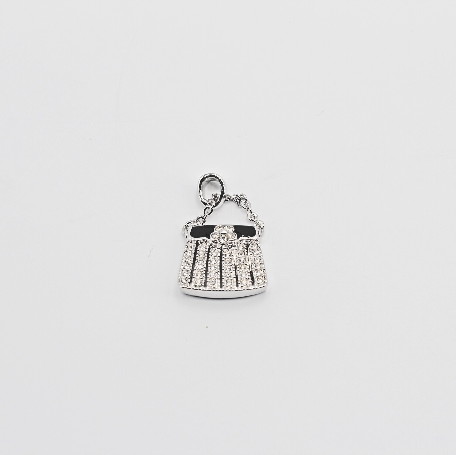 Descrizione articolo: Ciondolo borsetta con strass Materiale: Argento, strass Colore: Chrome,nero Dimensioni: Lunghezza 1,5 cm. alezza 1,2 cm. Peso: 2 grammi La confezione comprende: 1 pezzo Include scatola: No