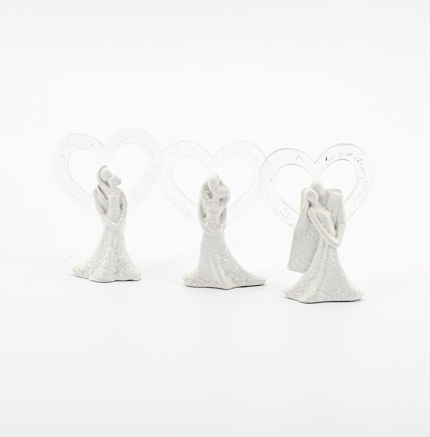 Descrizione articolo: Coppia cuore 3 soggetti assortiti Materiale: Resina Colore: Bianco Dimensioni: Lunghezza 4,3 cm Altezza 5,5 cm Peso: 8 grammi La confezione comprende: Pz. 3 Include scatola: No
