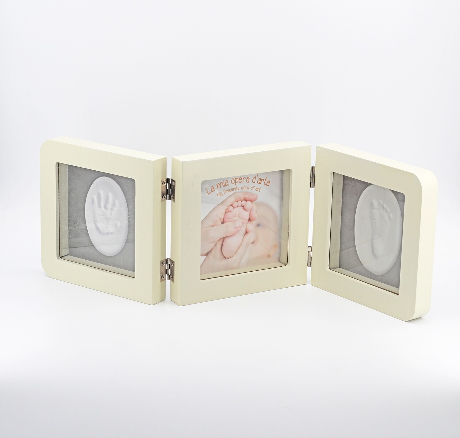 | Descrizione articolo: | Cornice baby foto kit più orme |