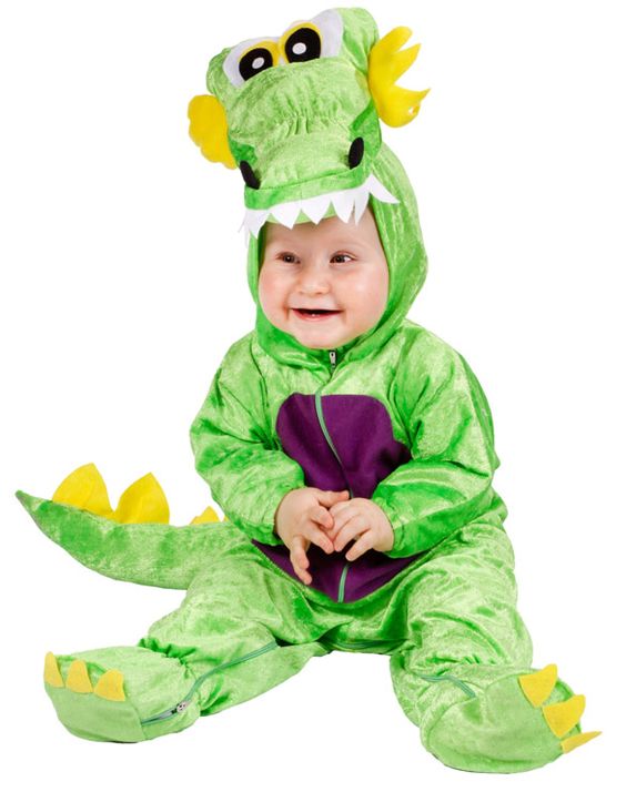 Questo costume da DRAGHETTO VERDE per bambino DI 10 MESI è composto da una TUTA IN CINIGLIA