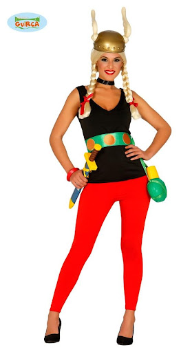 Simpatico costume da donna Gallica ispirato al celebre filma Asterix ed Obelix, composto da maglia, cintura e pantalone
