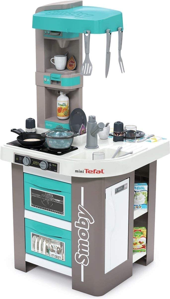 Con il suo design trendy a 360°, la cucina studio Bubble piacerà ai più piccoli e si adatterà ad ogni genere di arredamento . La sua altezza di 99 cm è ideale per bambini dai 3 anni in su. Venduta con tanti accessori: dalle posate alla padella tutto il necessario per realizzare i migliori piatti è disposizione dei più piccoli che potranno aaltare in padella un pancake o servire un caffè, immaginando di cucinare per i loro piccoli amici! Diverse aree di gioco sono state progettate per far divertire al massimo i piccoli cuochi. Da un lato possono utilizzare il forno, la lavastoviglie e il frigorifero, dall’ altro lato possono sperimentare nuove ricette grazie al piano di lavoro con fornelli e lavello. Questa cucina è dotata della funzione Magic Bubble che permette di far bollire l’acqua come per magia.