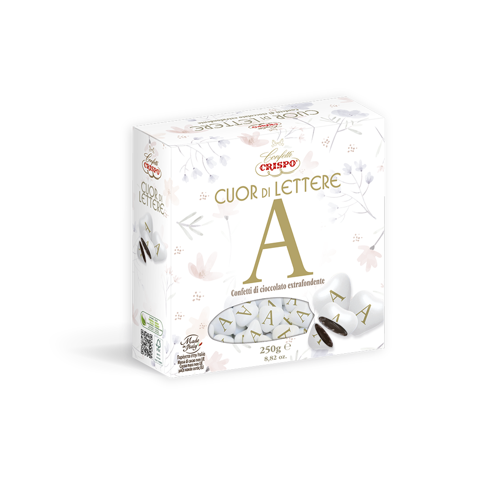 Cuor di Lettere è la linea di confetti a forma di cuore realizzati con cioccolato extra fondente di alta qualità, avvolti da un sottile strato di zucchero e personalizzati con iniziali eleganti. Confetti unici, pensati per celebrare con stile i momenti più speciali. Perfetti per matrimoni, anniversari, eventi esclusivi o come dolce messaggio da regalare, questi confetti uniscono gusto intenso e raffinatezza estetica.