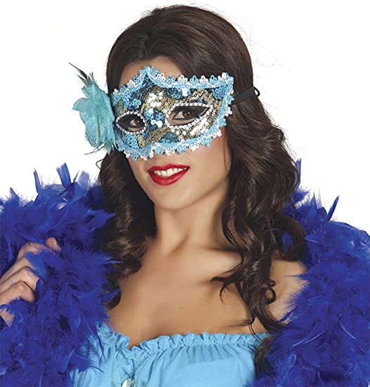 Domino Mascherina Azzurro Mare -Sirena con Glitter argento Fiore e Piumetta – GUIRCA 12710 -8434077129135