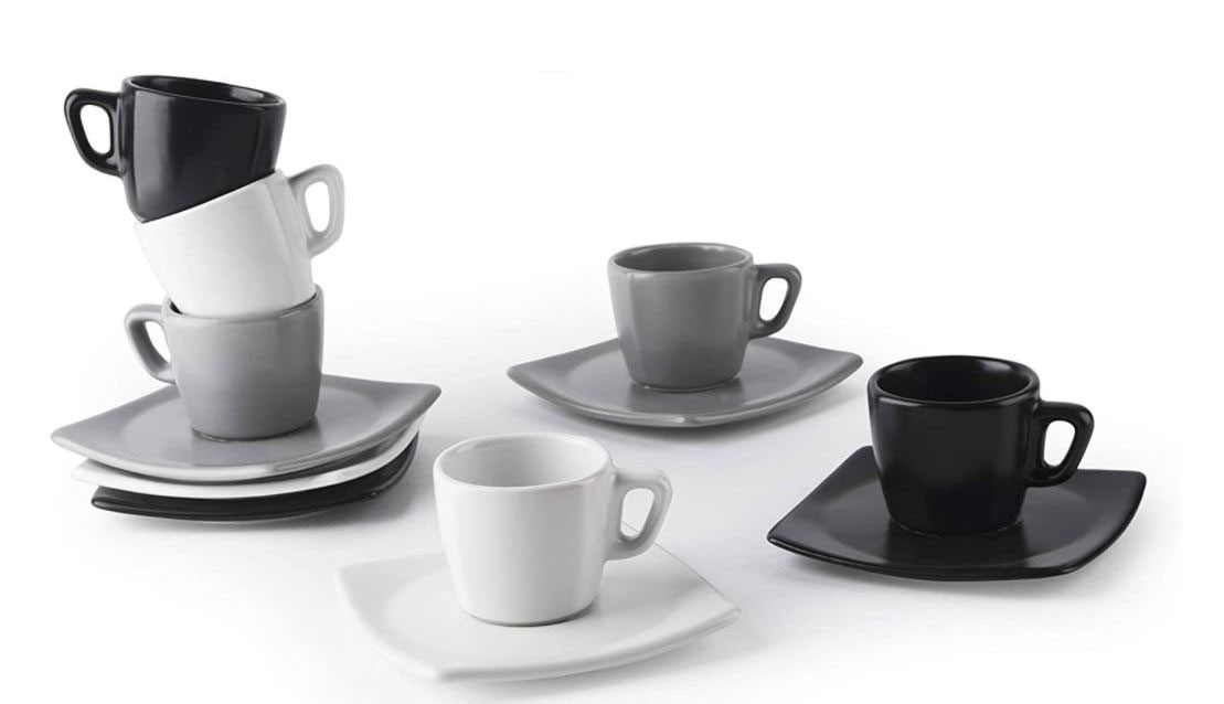 | Descrizione articolo: | Excelsa Eclipse Tazze Caffè Bianco Nero Grigio con piattino |
