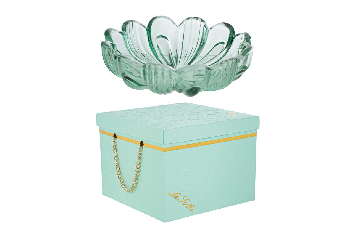 FIORE COPPETTA VETRO MENTA 14x14xh.4CM C/BOX-ROSE 189206