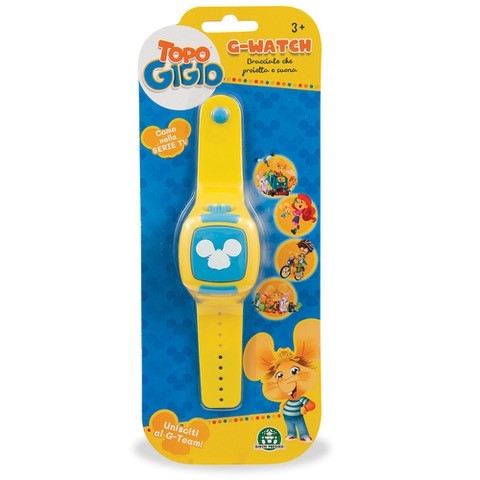 Topo Gigio indossa sempre il suo orologio speciale per chiamare il G-team e trasformarsi! Il G-Watch, come nella serie tv, proietta immagini di Gigio con i suoi amici (G-Team, Zoe, Bob).