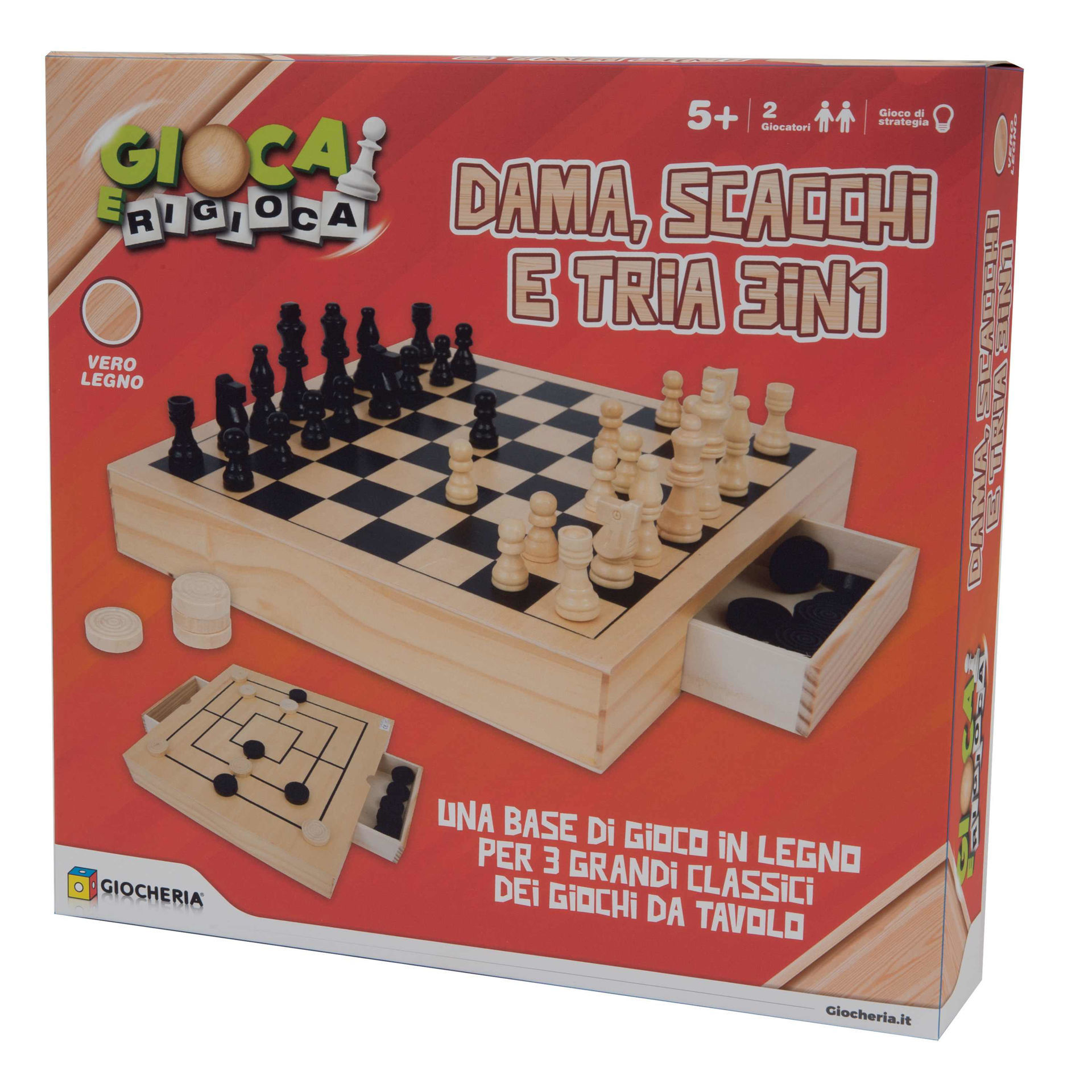 Giochi Dama, Scacchi e Tria in legno 3 in 1 – Giocheria 8052870839312