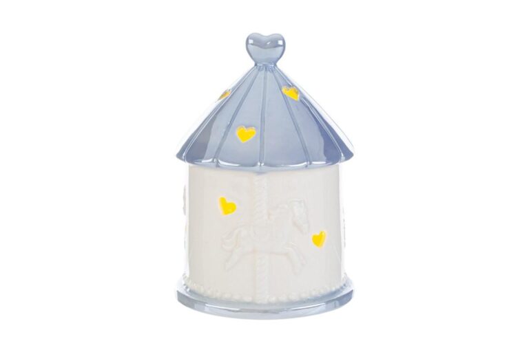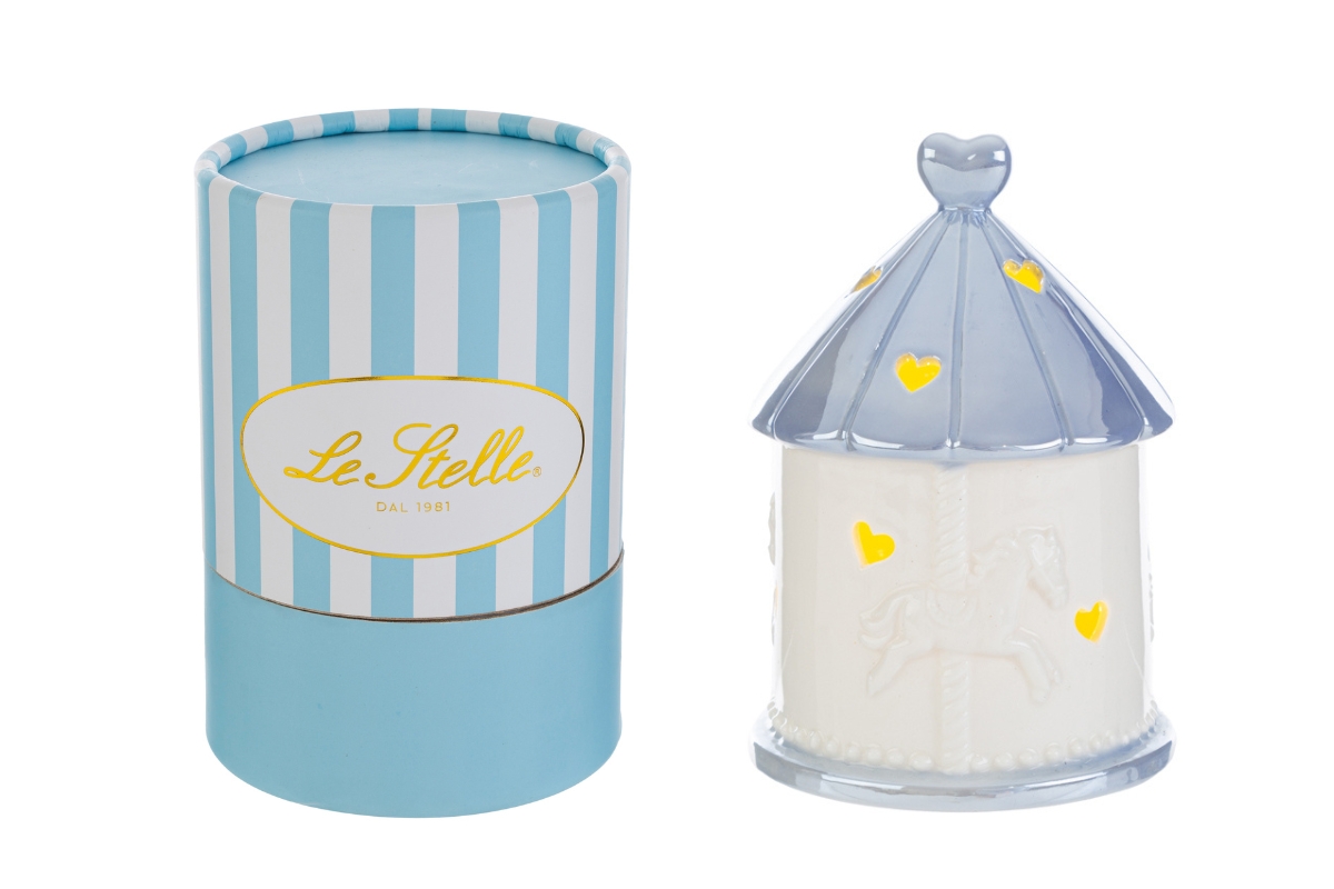 GIOSTRINA LED PORCELLANA CELESTE10x10xh.14CM C/ASTUCCIO