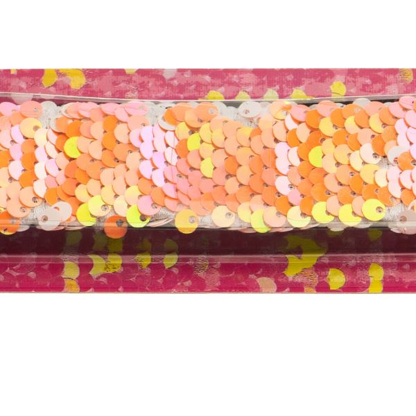 CONTENUTO:Â un bracciale a scatto con paillettes reversibili su un lato e pelo sintetico sul lato interno.