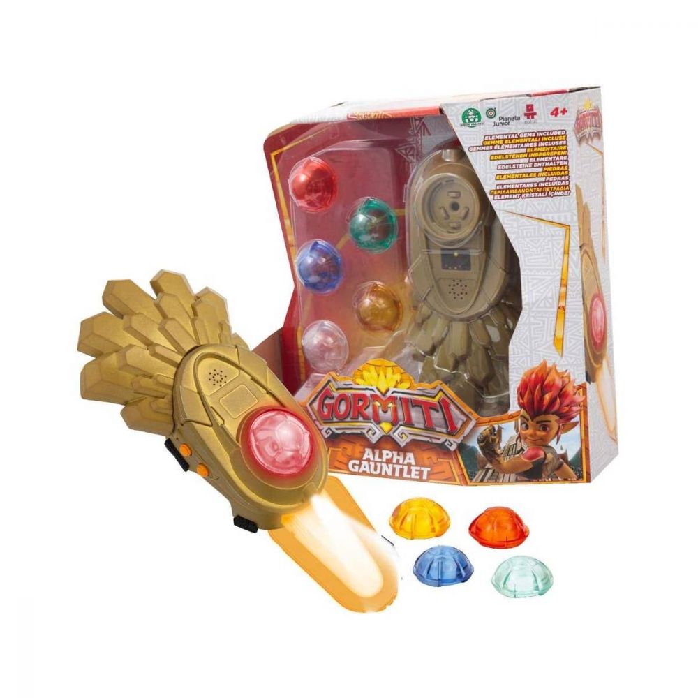 GORMITI ALPHA GAUNTLET BRACCIALE SERIE 3 Evoca i potenti Alfa Gormiti col nuovo Guanto Alfa! Basta scegliere una delle 5 pietre elementali e il Guanto evocherà il Gormita! E nasconde anche la Lama Alfa, per essere sempre pronto all’azione.