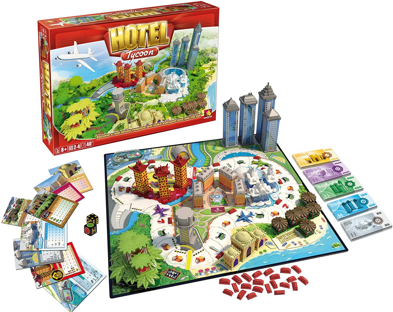 ![]() Diventa un magnate delle costruzioni con Hotel Tycoon! Acquista terreni, costruisci e sviluppa i tuoi hotel… nella speranza che i tuoi ospiti vi soggiornino abbastanza a lungo da ridursi sul lastrico quando giungerà il momento di pagare il conto! L’ultimo giocatore che resta in gioco viene dichiarato vincitore.