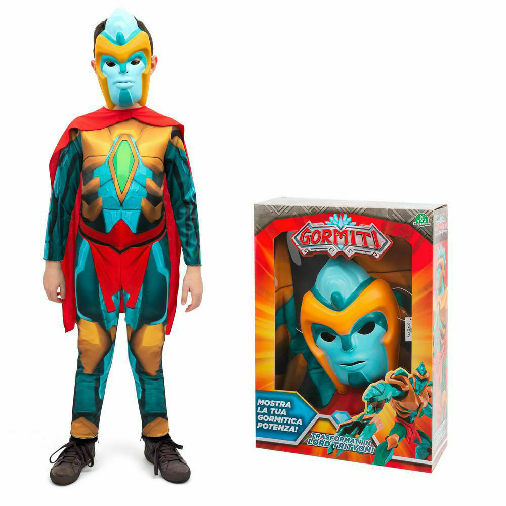 Costume del personaggio Tryton della serie Gormiti La confezione contiene una tuta, una maschera ed un mantello Ottimo da indossare ad una festa con tematica Prodotto di qualità ottimale