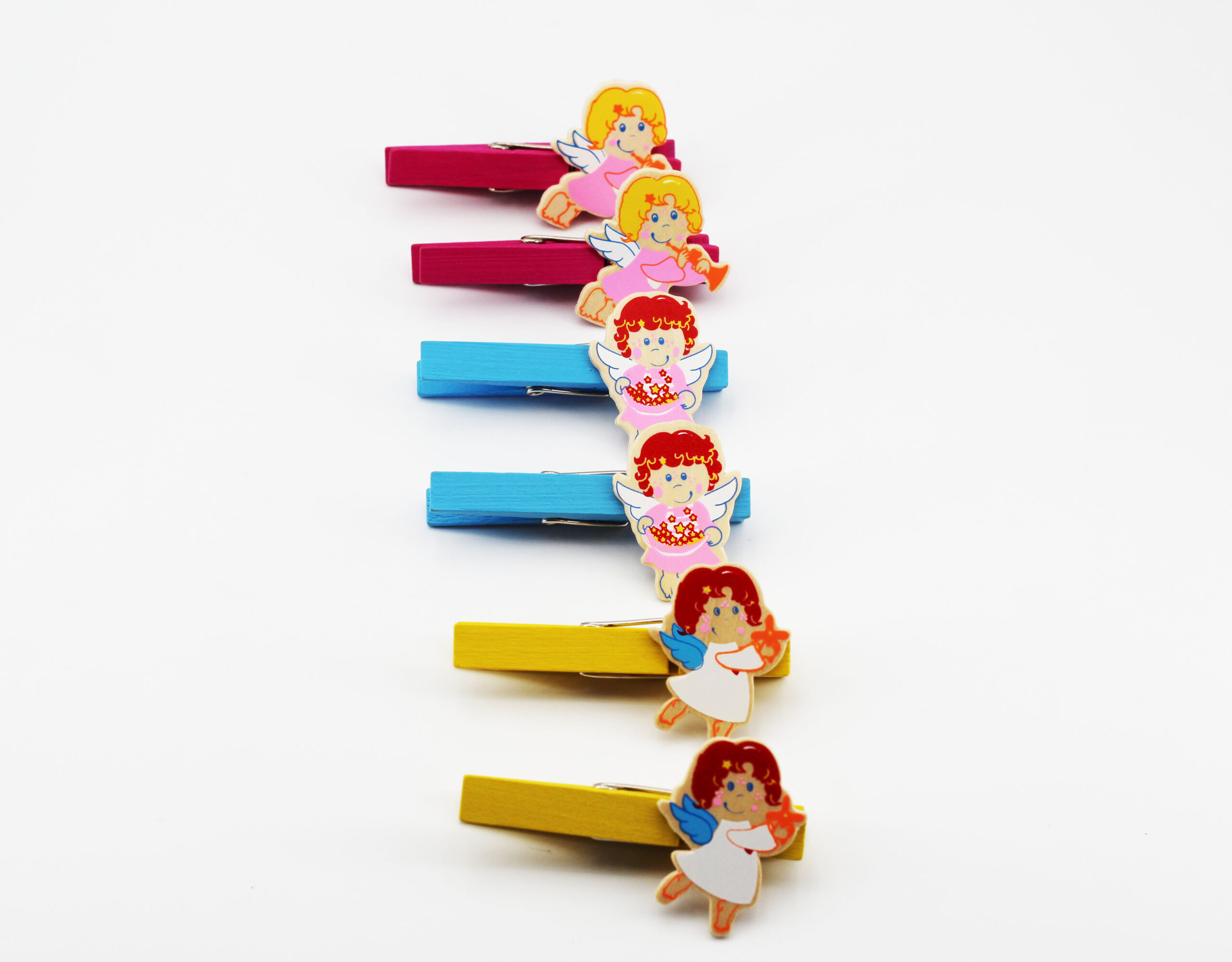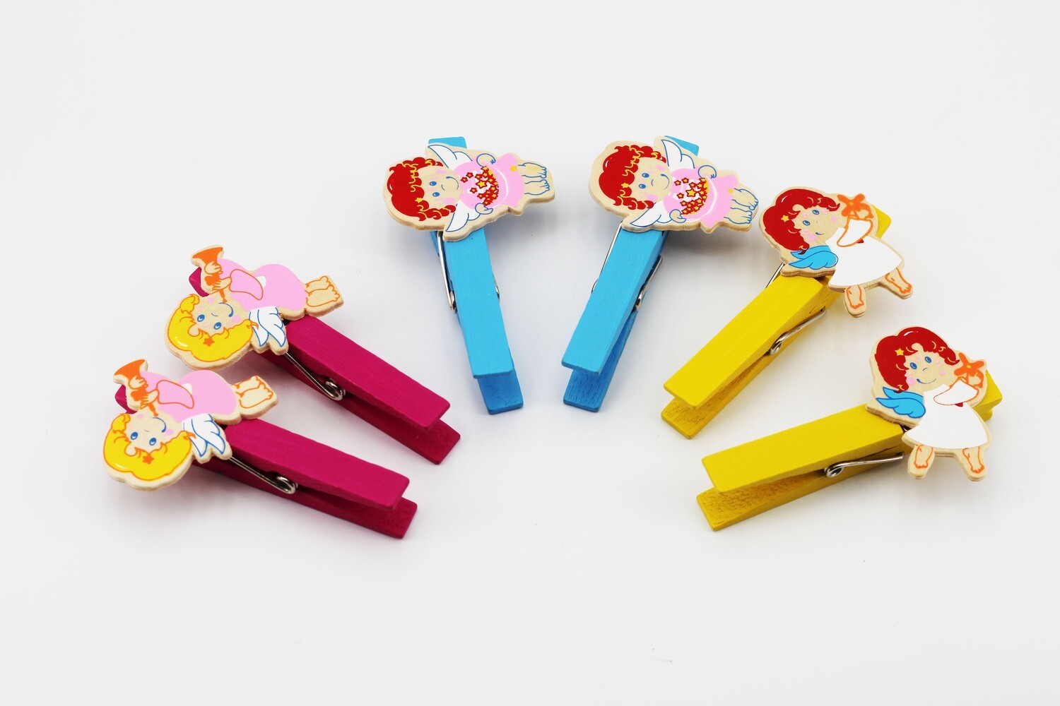 Mollette legno colorate con angelo bimba 6 pz assortiti