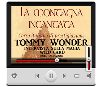 Nell’ultimo filmato estratto dalla serie de “La Montagna Incantata” (originariamente pubblicata in VHS nel 1998 in occasione di una delle tante edizioni del Corso di Prestigiazione organizzato da Tony Binarelli) abbiamo la fortuna di ascoltare e vedere all’opera Tommy Wonder che prima risponde ad una serie di domande, esprimendo le proprie idee e riflessioni sulla magia, e poi si esibisce in una versione di “wild card” (non spiegata) che e’ un capolavoro di costruzione.