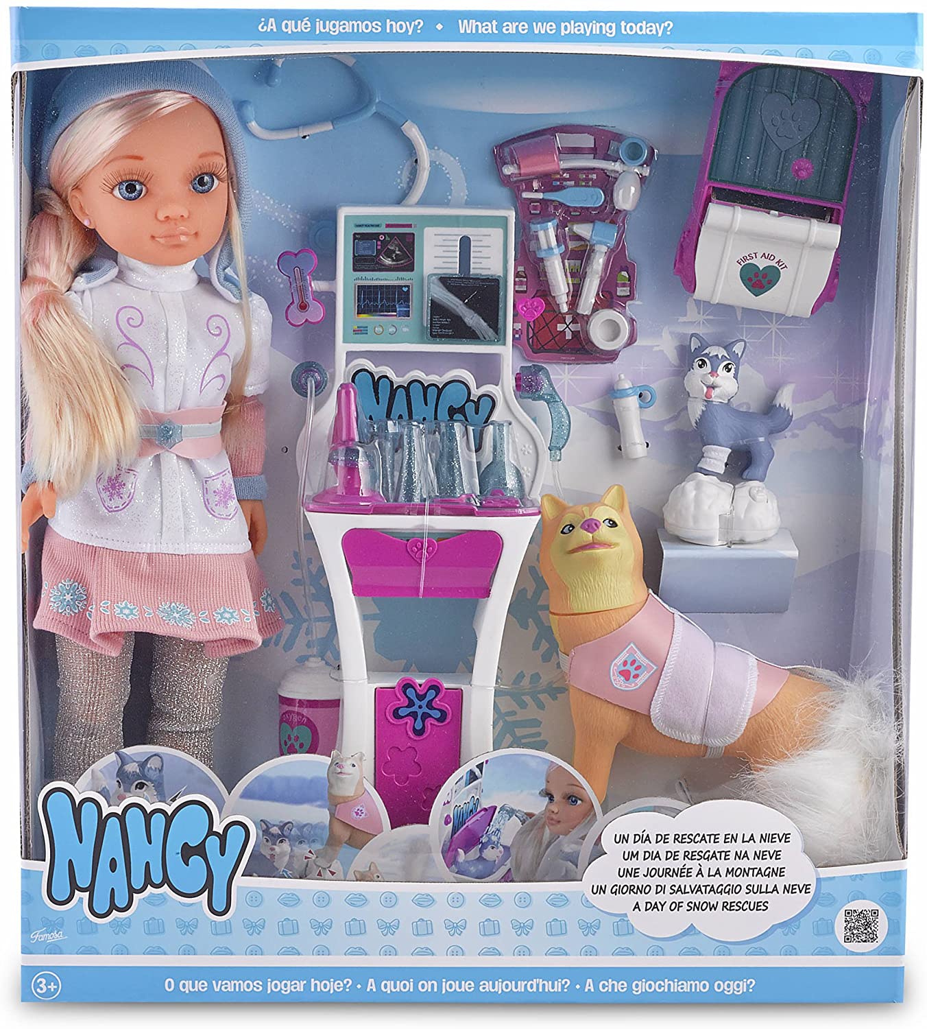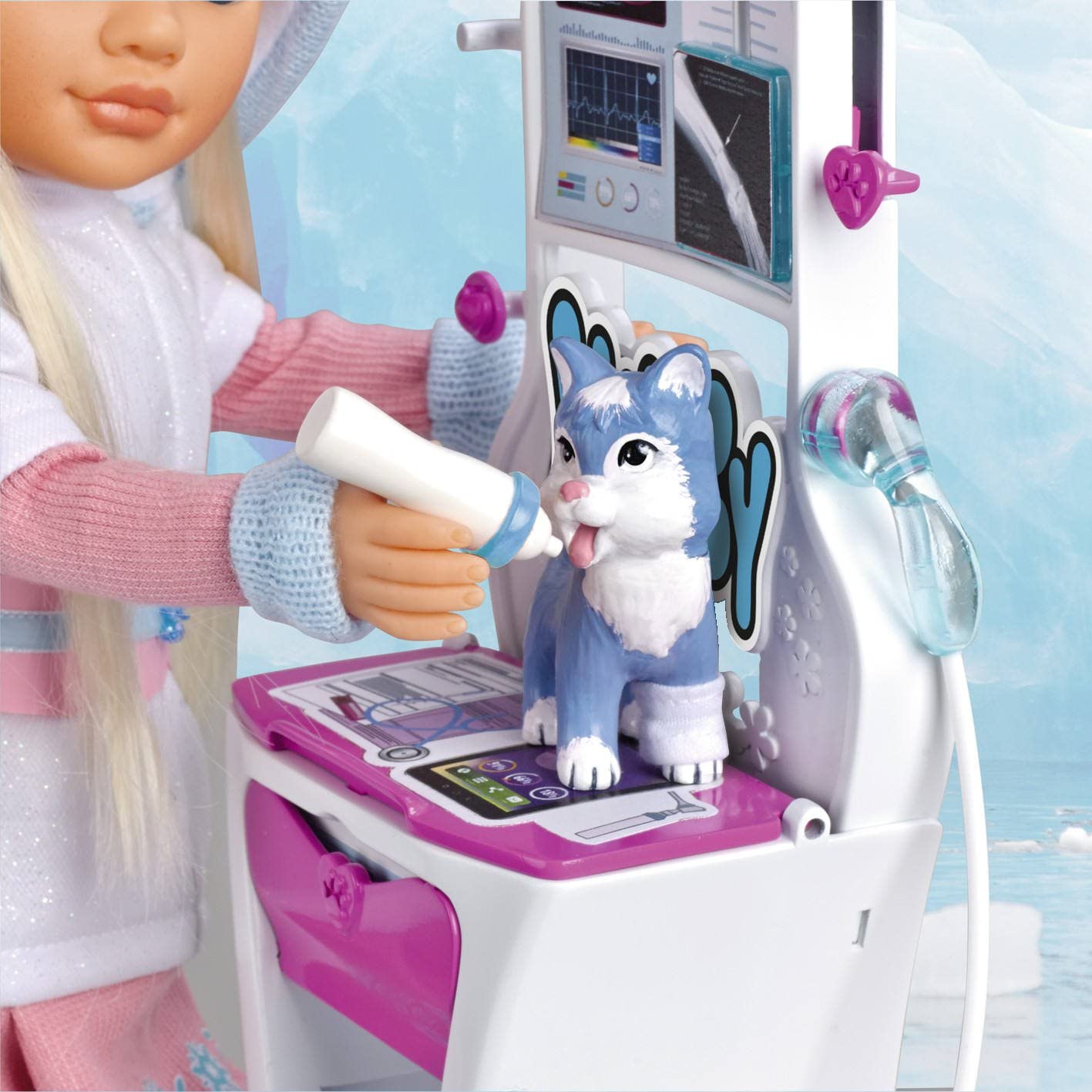 - Contiene: una bambola da 43 cm con vestiti invernali, 2 personaggi di lupo, 1 traino, 1 vassoio per lavare gli animali, 1 stetoscopio, 1 bottiglia di ossigeno e varie piccole attrezzature.