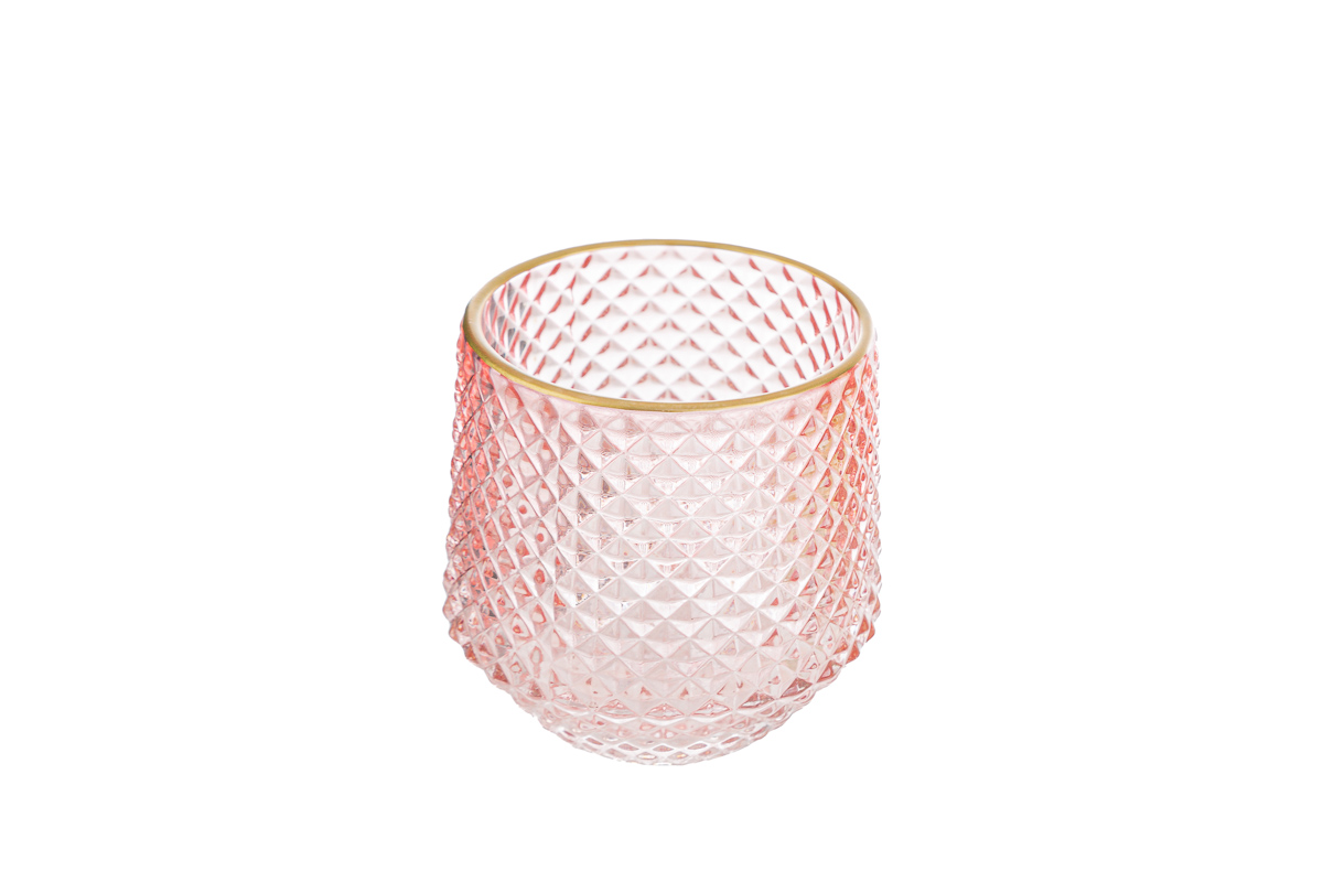 p/candele vetro col. rosa 9xh.10 cm. pz.6