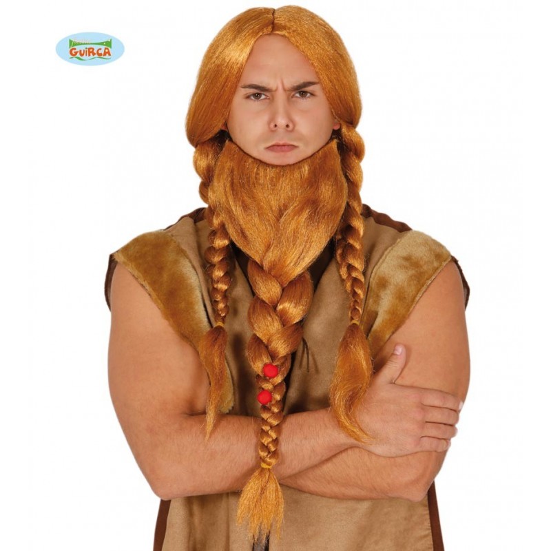 Parrucca VIKINGO uomo – CASTANA con barba intrecciata – 4990- Guirca 8434077049907