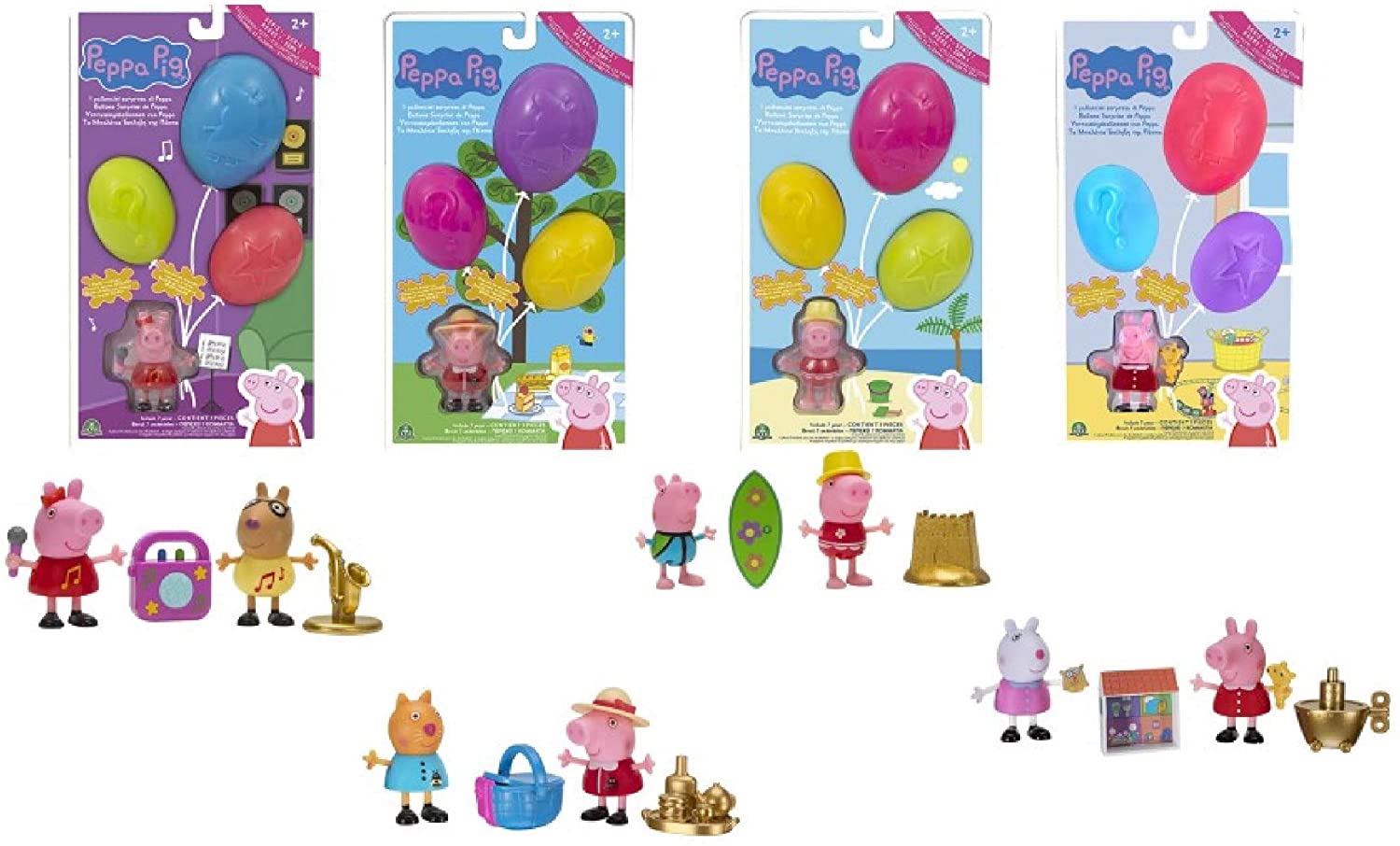 - Palloncini a sorpresa Peppa, serie 1, composto da 4 diversi set con 2 personaggi e 2 accessori. Arricchisci la tua collezione con i temi: spiaggia, cena e musica
