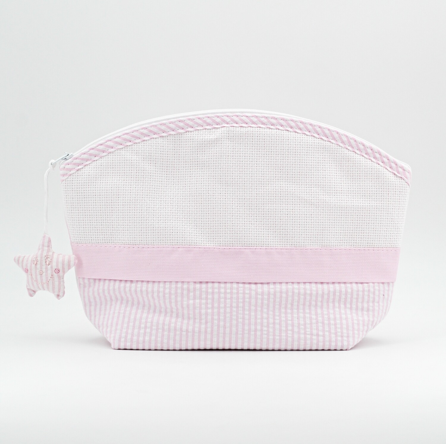 La confezione comprende 1 pochette rosa per neonati con interni plastificati e chiusura lampo, dimensioni: 26 x 20 cm. 100% in cotone confezionato con busta trasparente.