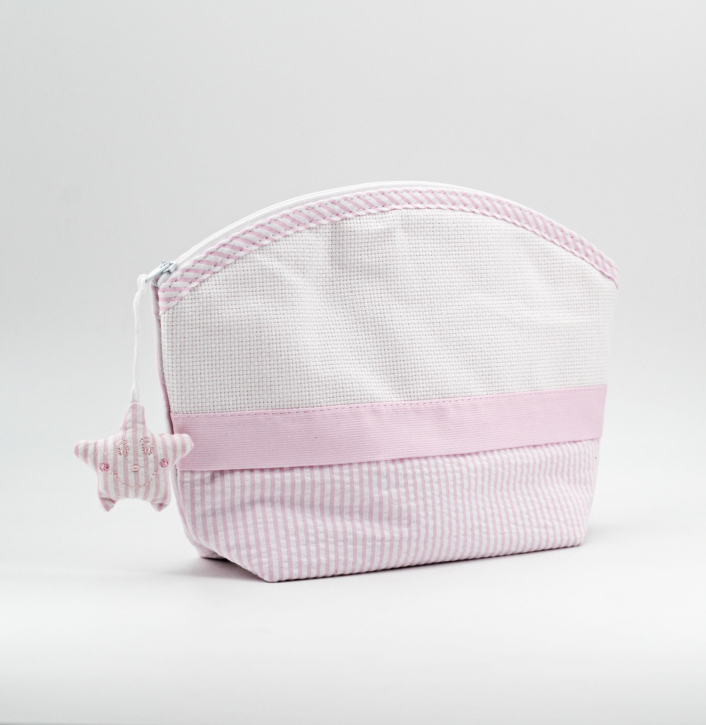 La confezione comprende 1 pochette rosa per neonati con interni plastificati e chiusura lampo, dimensioni: 26 x 20 cm. 100% in cotone