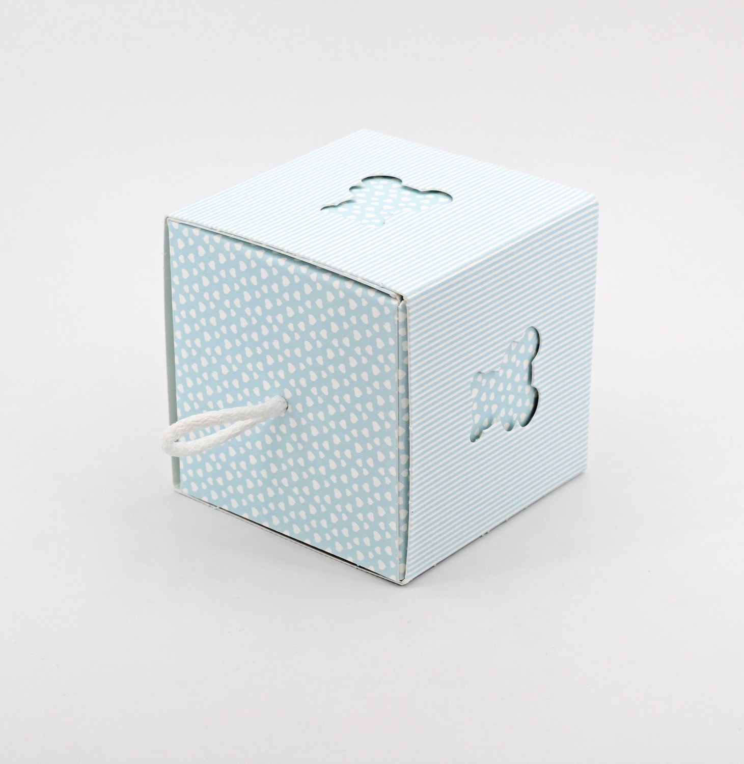 Scatola orsetto millerighe, dimensioni: 10 x 10 x 10 cm.
