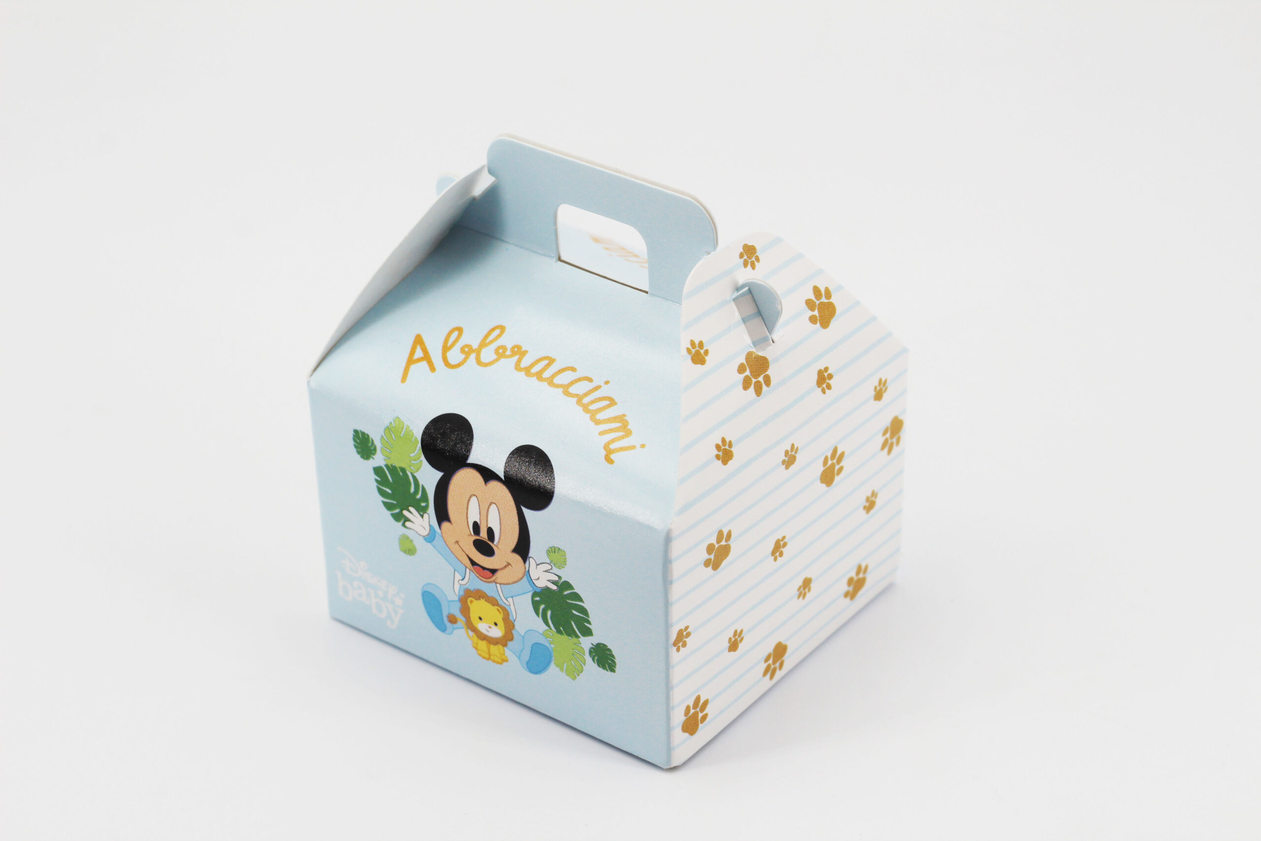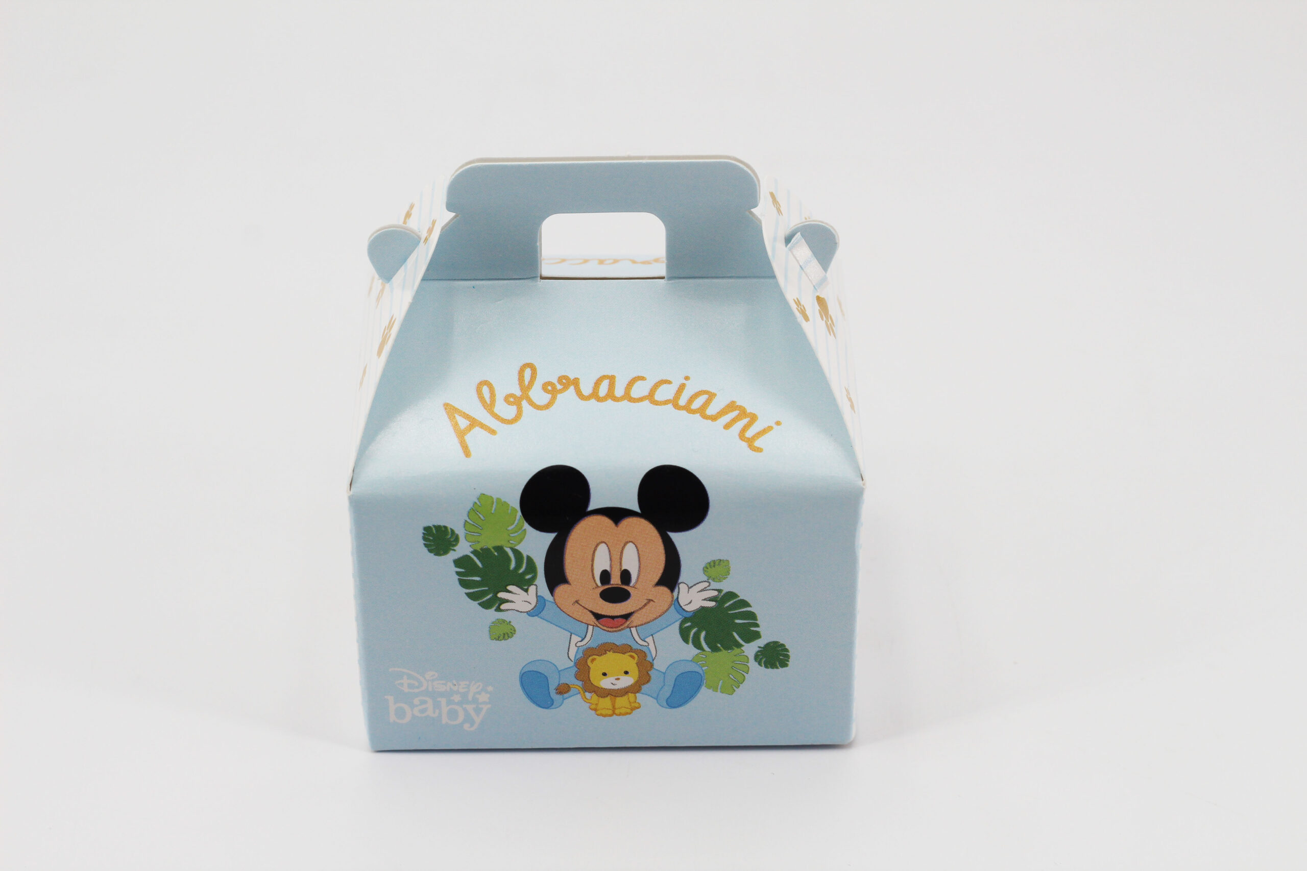 Descrizione articolo: Scatola valigetta mickey baby (non comprende accessori) Materiale: Carta Colore: Celeste Dimensioni: Lunghezza 7 cm Larghezza 6 cm Altezza 4.5 cm Peso: 8 grammi La confezione comprende: Pz. 10 Include scatola: No