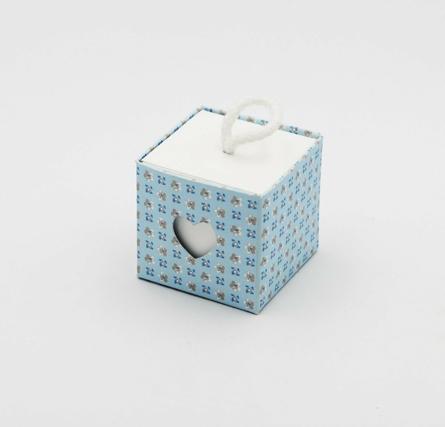 Scatolo cuore bloom celeste con cordino dimensioni: 5 x 5 x 5 cm.