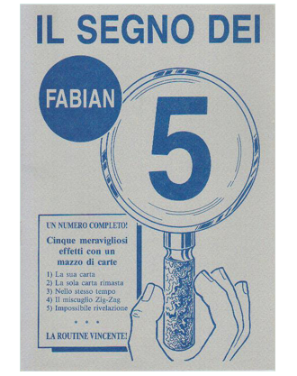 Fascicoletto di 12 pagine illustrate. Routine completa formata da cinque effetti cartomagici che richiedono semplici manipolazioni e applicano dei principii matematici. Gli effetti si possono ovviamente eseguire anche indipendentemente uno dall’altro. Nel classico stile di Colombini che bada, giustamente, piu’ all’impatto sul pubblico di profani che a quello dei prestigiatori.