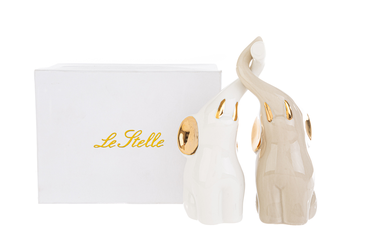 set 2 elefantini porcellana 5x9xh.16 cm. c/astuccio