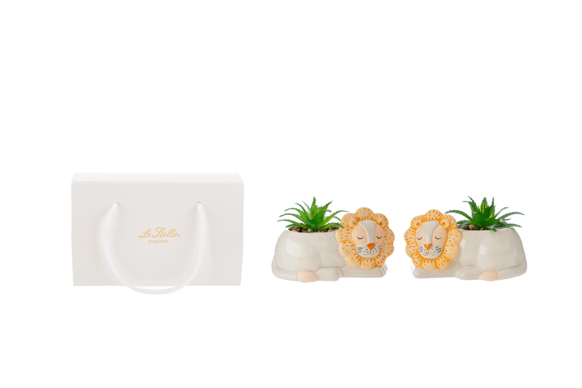 VASETTO LEONE PIANTINA ARTIFICIALE 2 ASS.13×7,5xh.8,5CM C/SHOPPER 156570 PZ. 4
